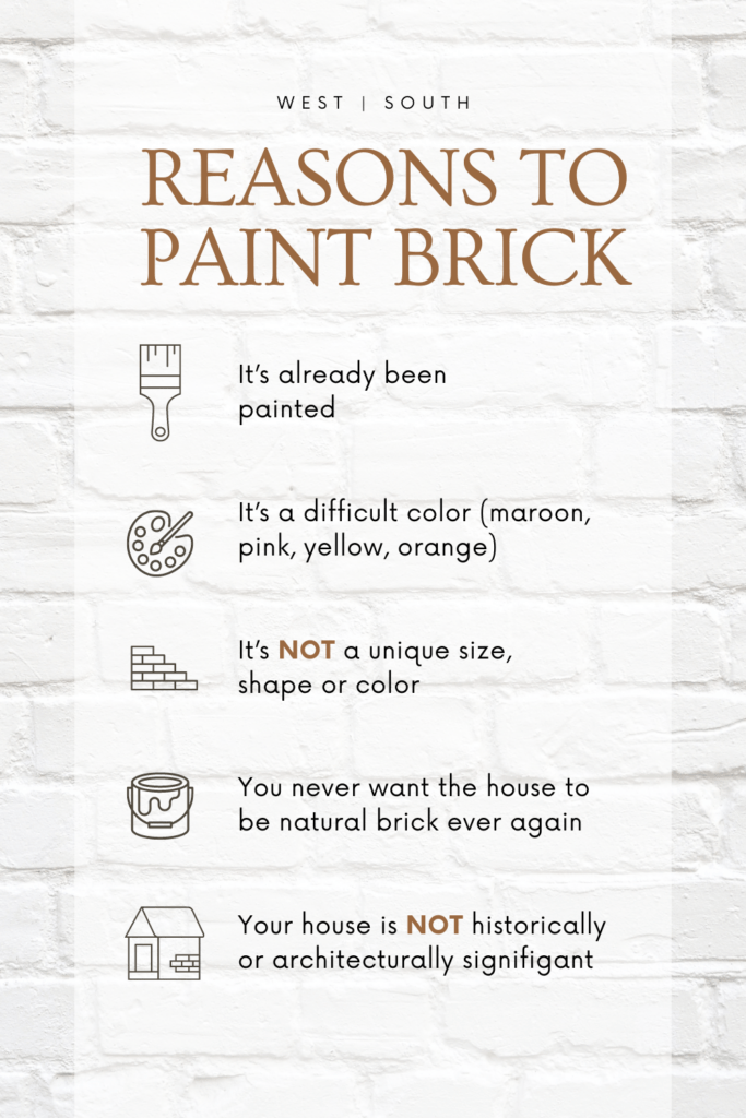 If you’re thinking about painting your brick, here are a few reasons I’d consider doing it, and a few reasons that would make me think twice about painting: